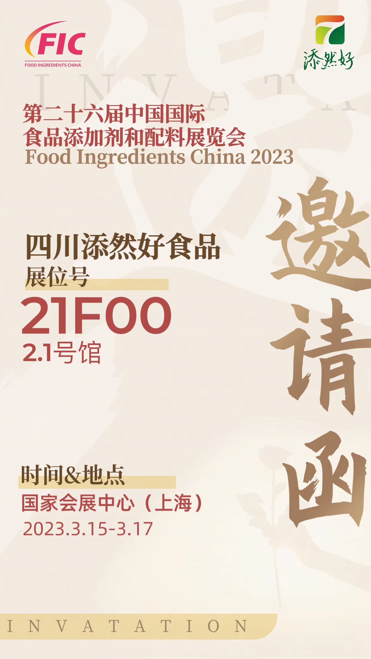 【概要描述】亲爱的客户您好,感谢您长期以来对基层公司的支持和关注,一路有您同行,是我们前进的动力。 我们将在上海参加第二十六届中国国际食品添加剂和配料展览会,届时我们将会在展会上展示我们的新老产品。 有了你们的支持,才能让我们的产品能够得到更多的认可,敬请于以下时间莅临,我们诚心期待与您见面、交流的机会。 展会时间:2023.3.15-3.17 展会地点:国家会展中心(上海) 展位号:21F00 2.1号馆